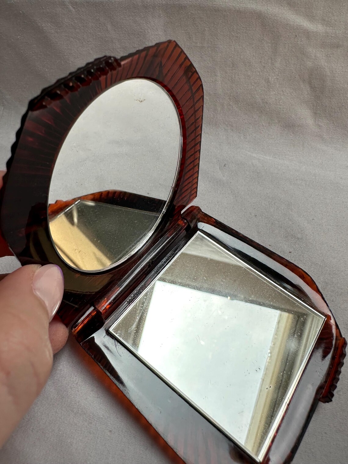 Unique Art Deco Vintage Bakelite Portable Compact Mirror Tortoise Shell ...