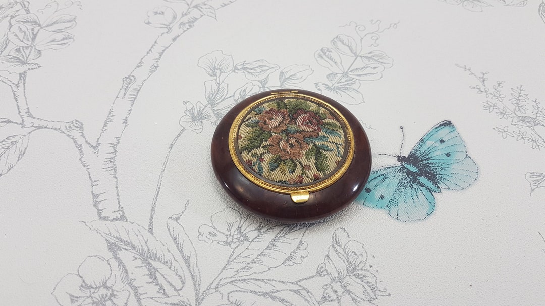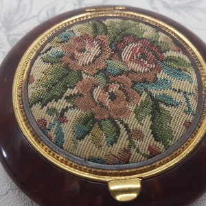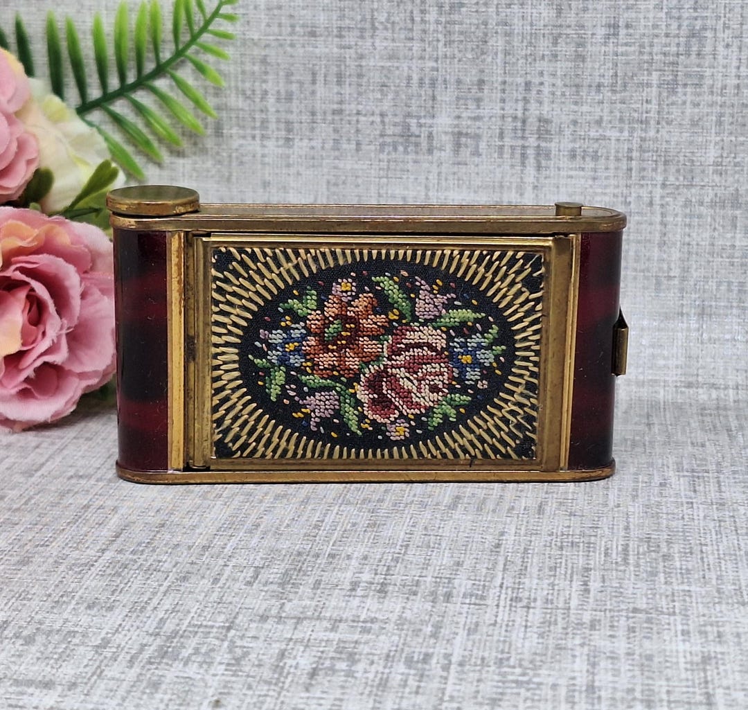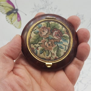 Vintage Petit Point Powder Compact, Tortoiseshell Celluloid Compact ...