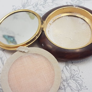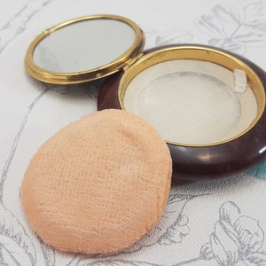 1960s Vintage Du Barry Powder Compact with Puff, Brown Faux Tortoise Case