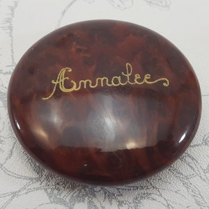BEAUTIFUL Vintage Tortoise Shell Bakelite N Embossed Silver Powder ...