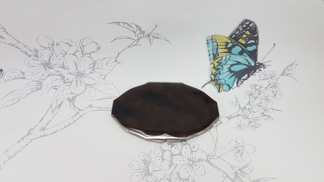 Elegant Vintage Silver Compact with Faux Tortoise Shell