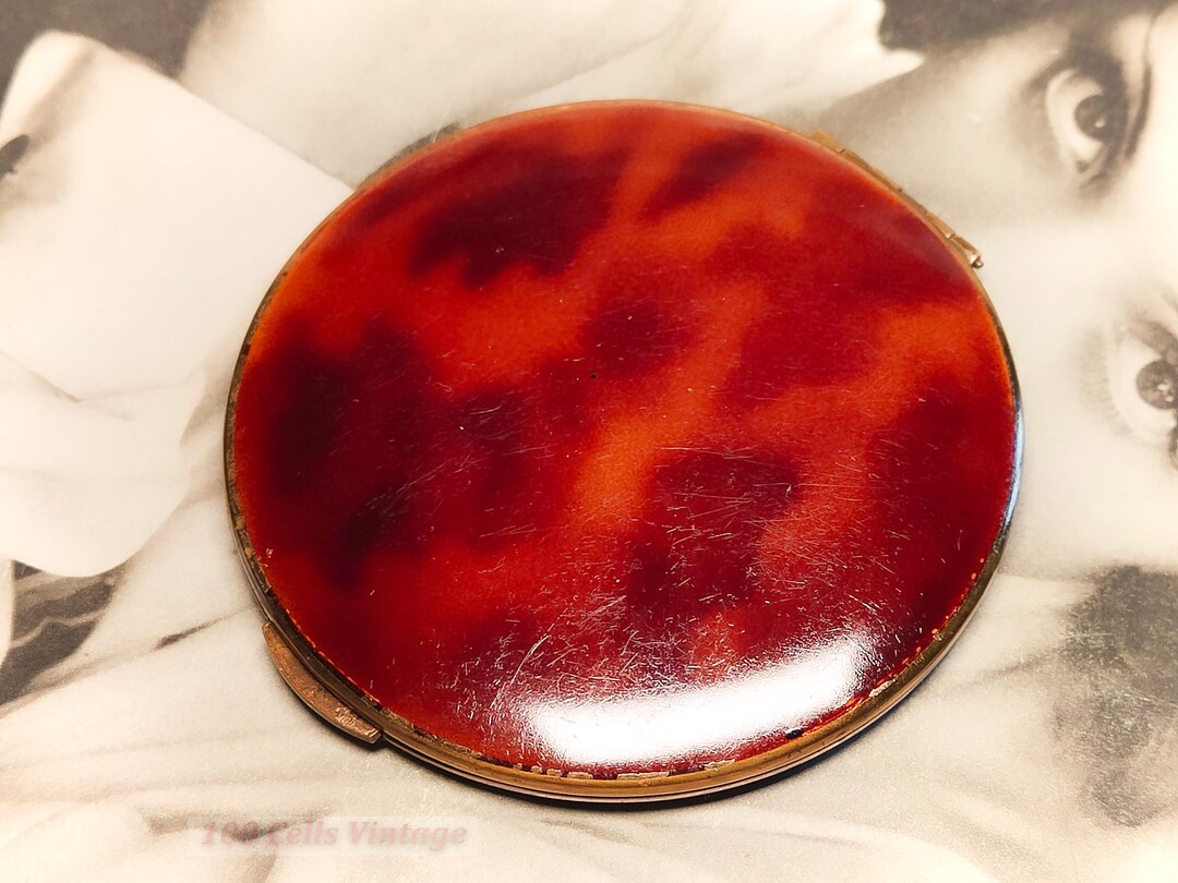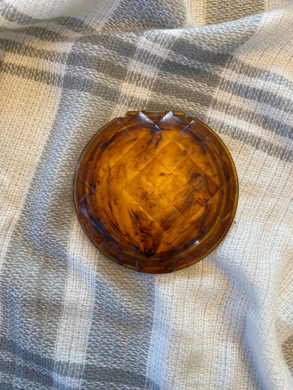 Vintage Faux Tortoise Shell Powder Compact - Etsy