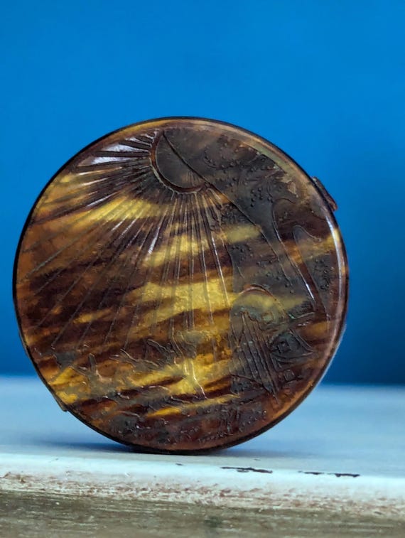 Antique Faux Tortoiseshell Powder Compact With Intricate Relief Design ...