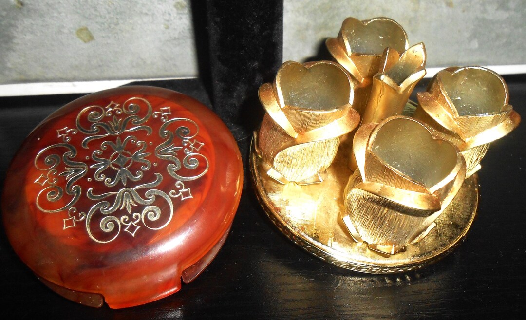 Avon Golden Vanity Lipstick Holder & Tortoiseshell Powder Mirrored ...