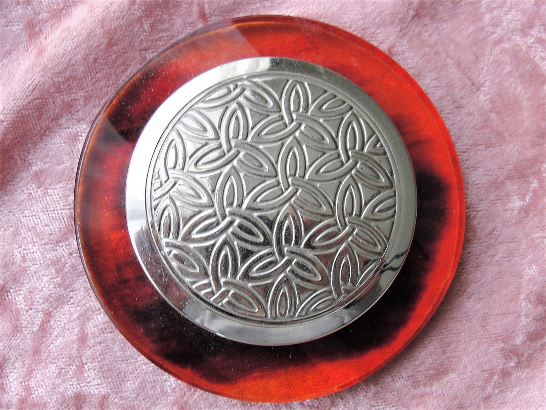 VINTAGE KIGU POWDER Compact Faux-Tortoiseshell with Circular Leaf Motif ...