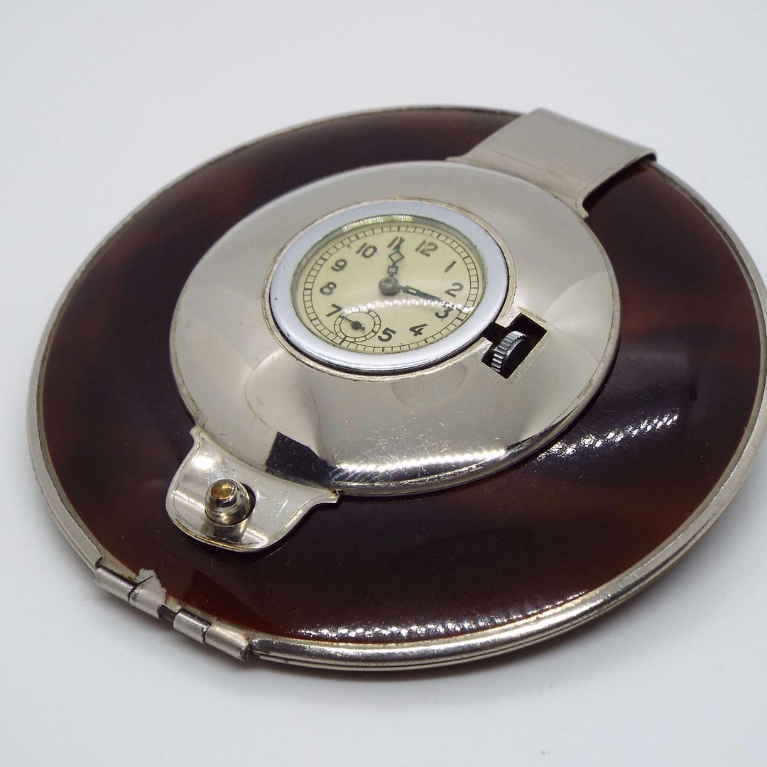 Vintage Art Deco Powder Compact With Clock Flying Saucer Novelty Powder ...