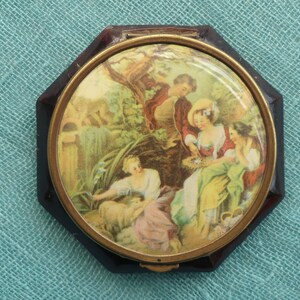 Art Deco Faux Tortoise Shell and Brass Powder Compact With Asian Scenes ...