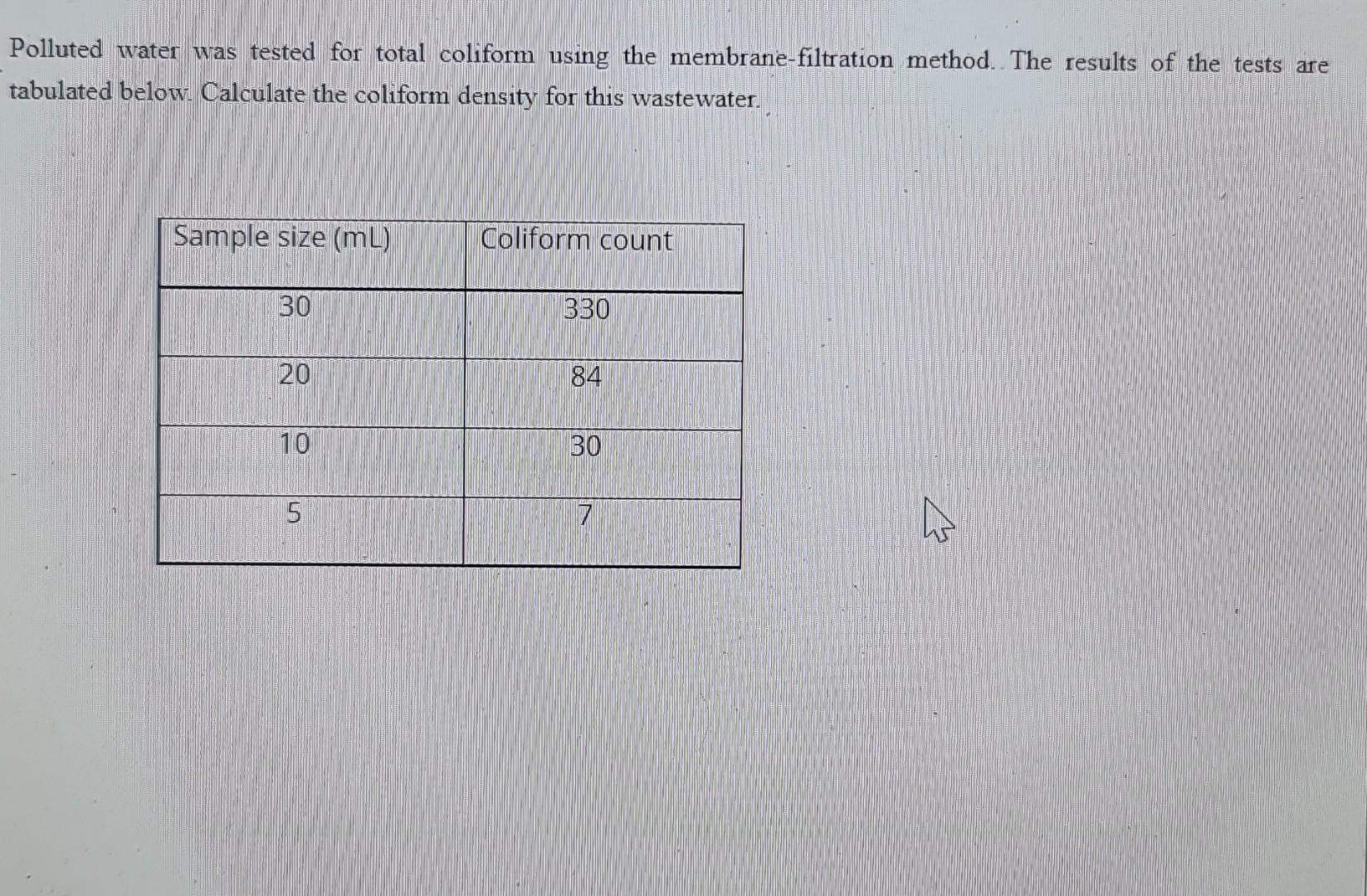 Solved Polluted water was tested for total coliform using | Chegg.com