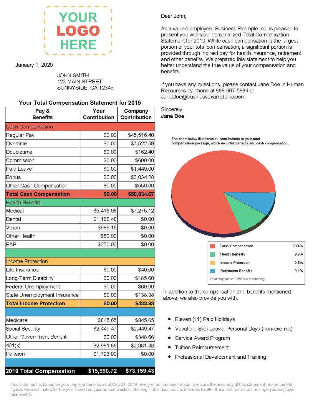 Total Compensation and Benefits Statement Template, Employee ...