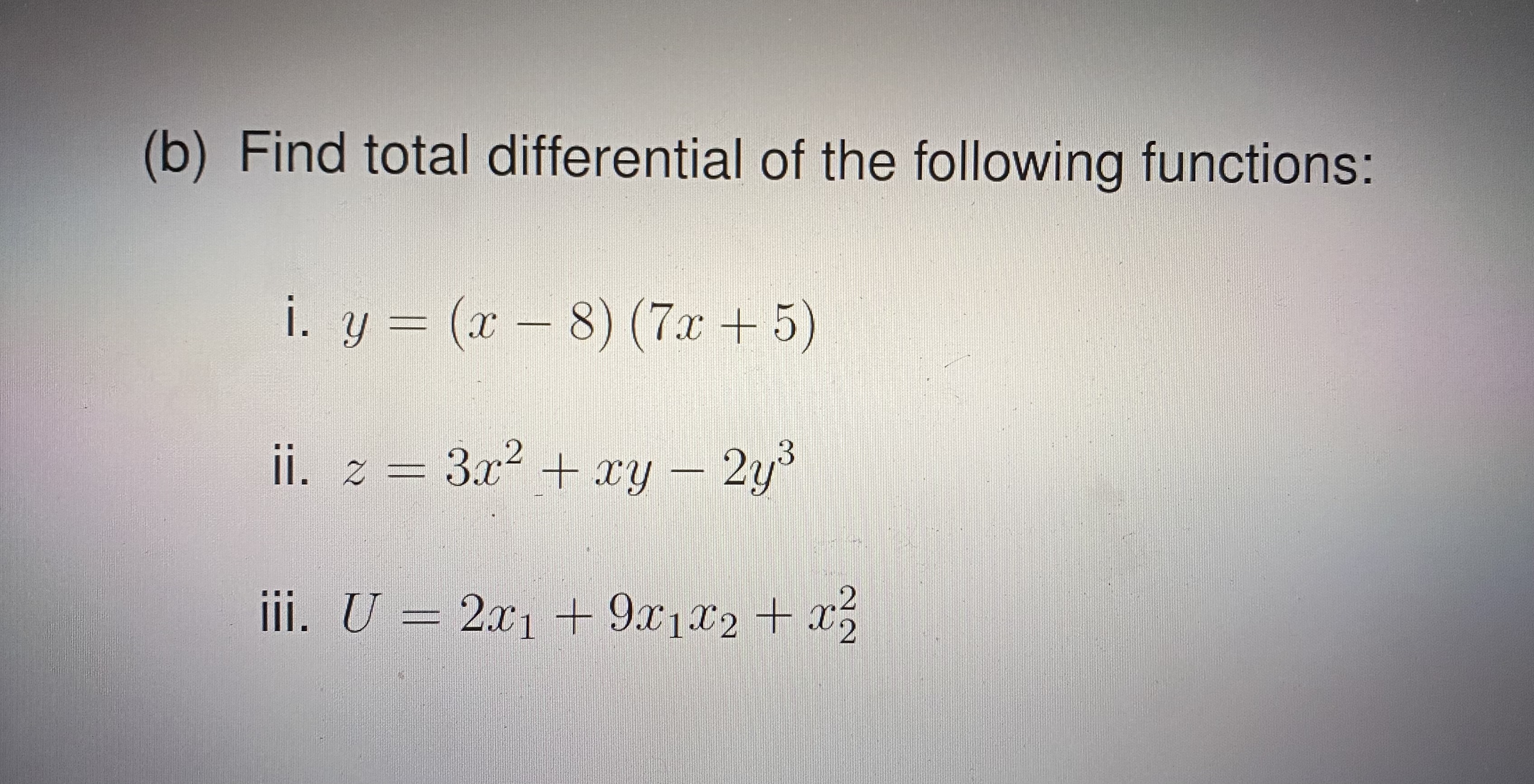 Solved (b) Find total differential of the following | Chegg.com
