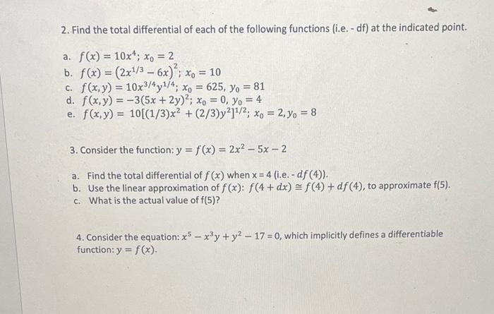 Solved 2. Find the total differential of each of the | Chegg.com