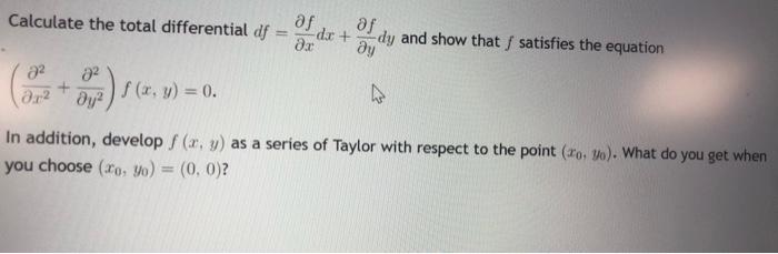 Solved The total differential of a function f(x,y) | Chegg.com