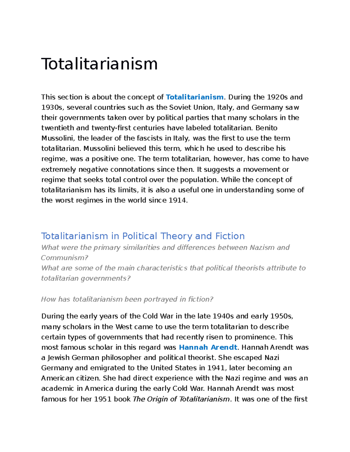 HIST 1112 - Understanding Totalitarianism: Key Concepts and Examples ...