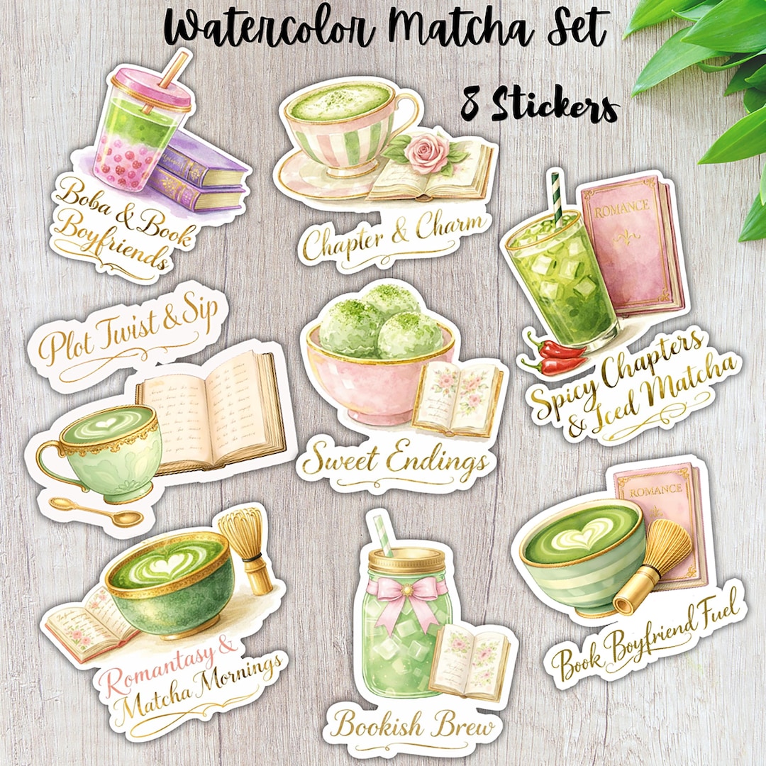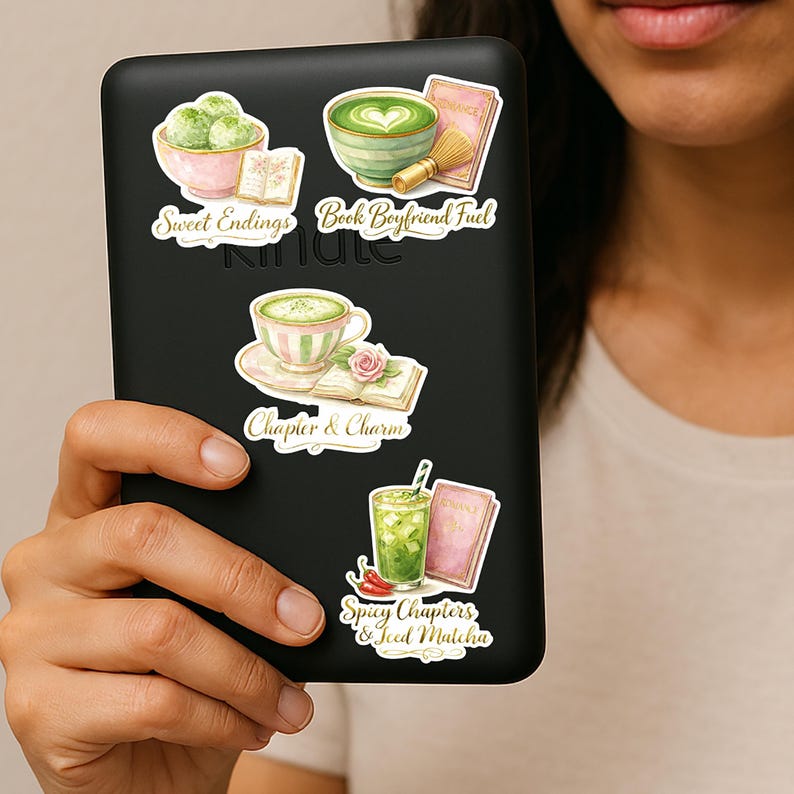 Watercolor Matcha Stickers | Book Lover Gift Pack Kindle Stickers ...