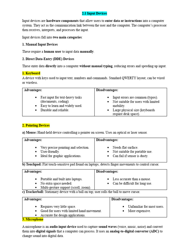 Notes On Input and Output Devices For IGCSE | PDF | Computer Keyboard ...
