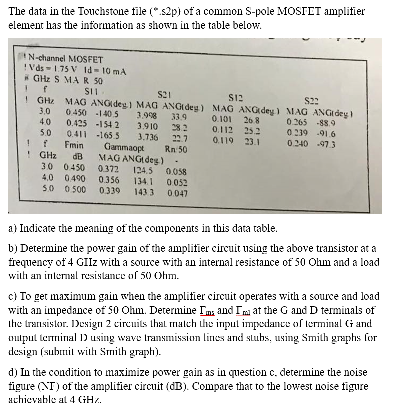 Solved The data in the Touchstone file (*.s2p) of a common | Chegg.com