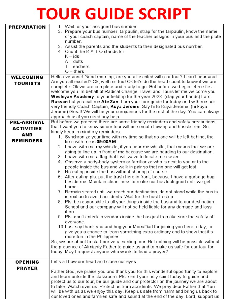Tour Guide Outro Script at Lynell Johnston blog