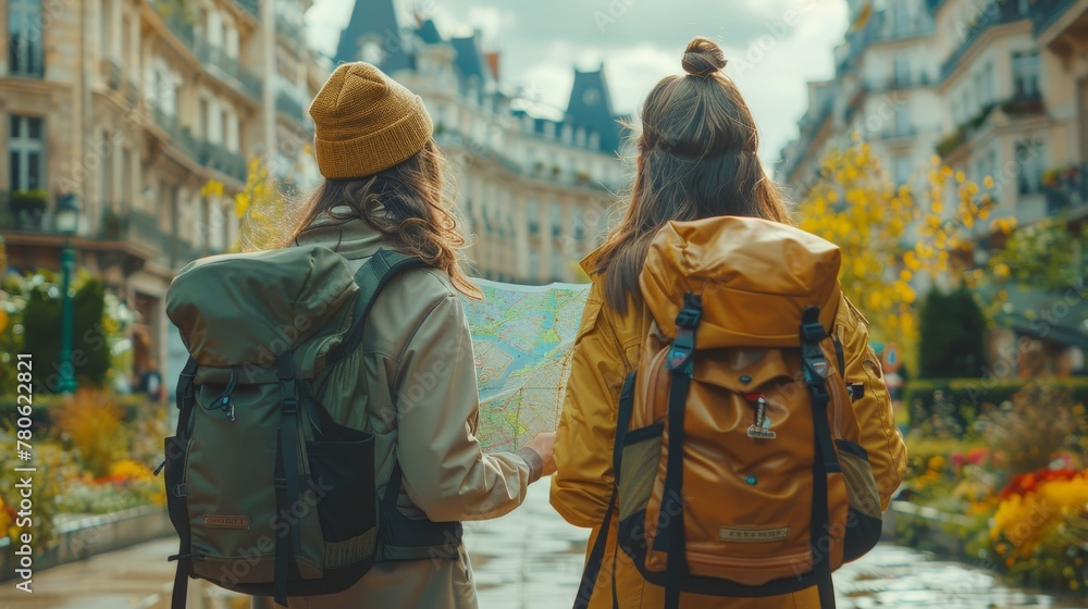 Tourists checking on a map friends exploring city map Ai generated ...