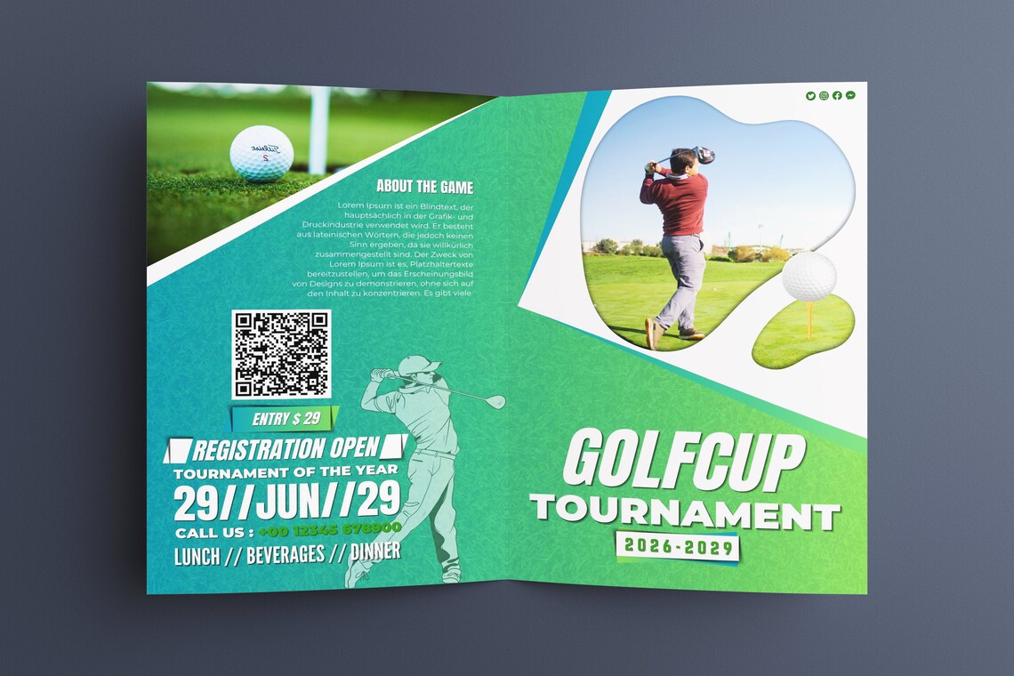 Golf Tournament Bi-fold Brochure Template | Golf Cup Bifold / Halffold ...