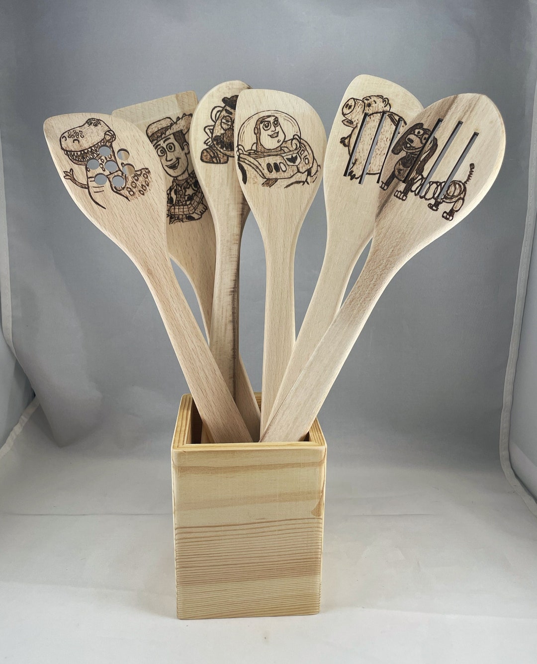 Toy Story Wood Burned Beech Utensil Set of 6, Pyrography Wood Burning ...