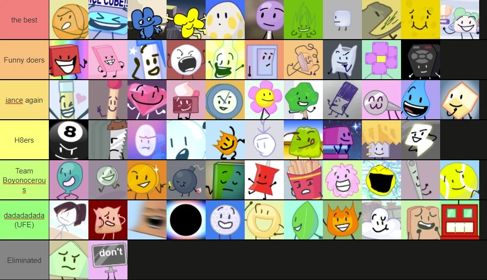 BFDI(A)/BFB/TPOT Characters (Mawilite's icons) Tier List (Community ...