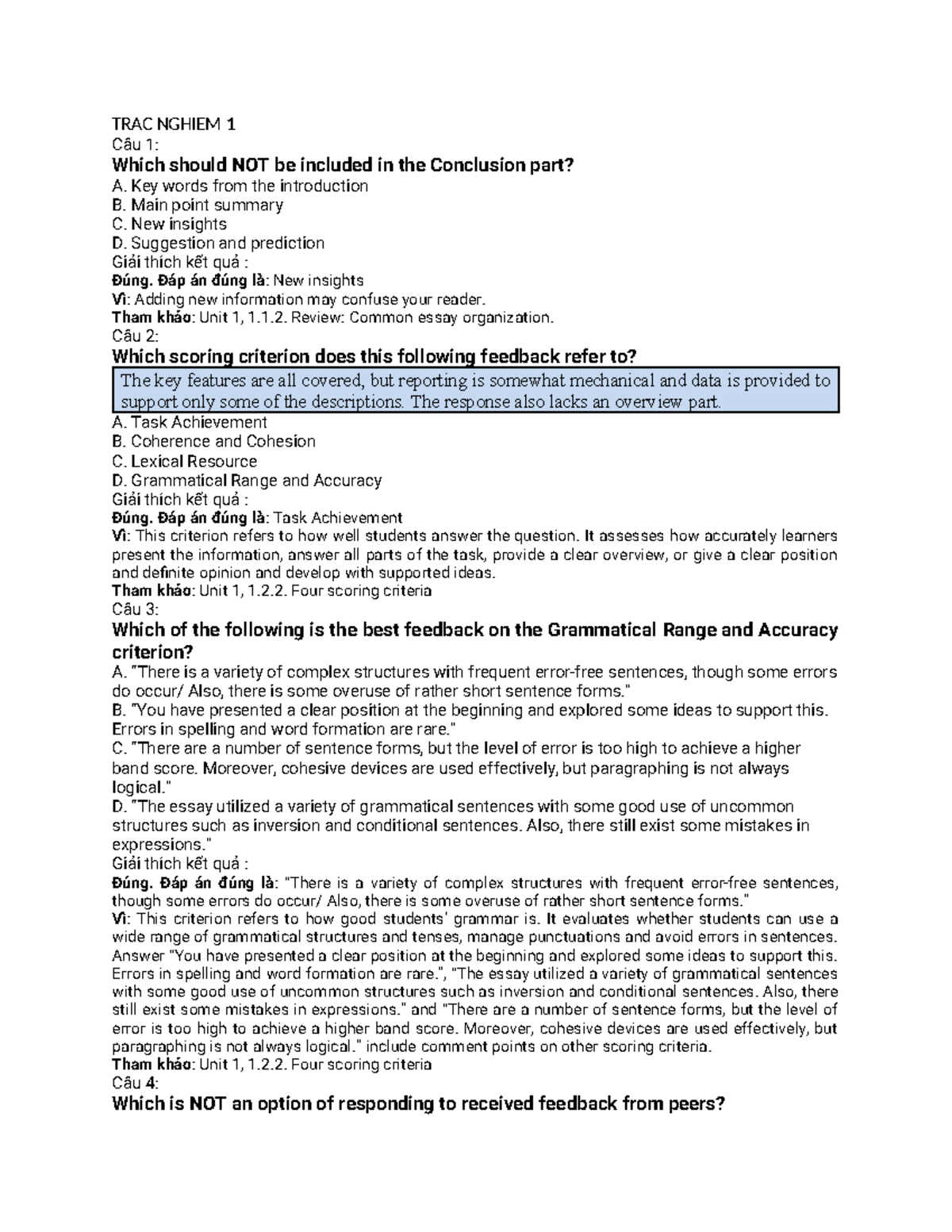 VIET 6 - TRAC NGHIEM: Essay Organization and Feedback Analysis - Studocu