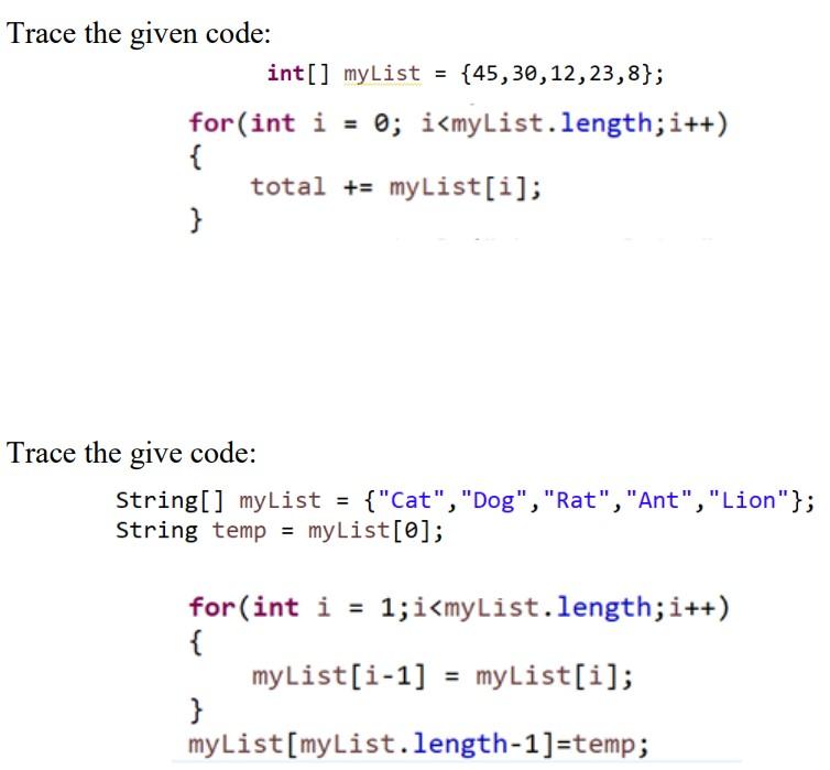 Solved Trace the code: You must do tracing as shown in this | Chegg.com
