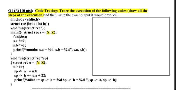 Solved Q1 (B) \10 pts \: Code Tracing: Trace the execution | Chegg.com