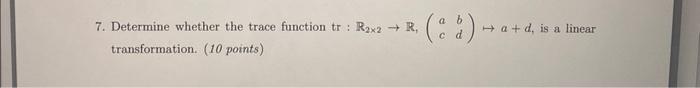 Solved Given function trace defined below note: ones is a | Chegg.com