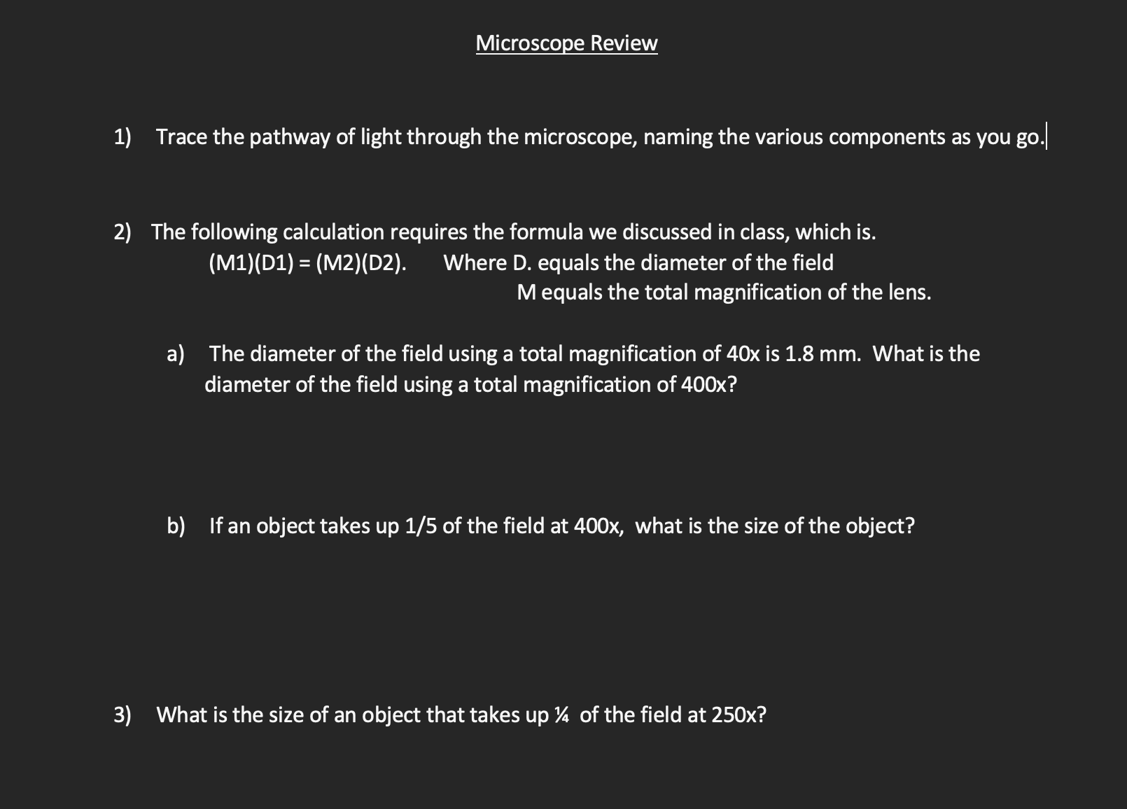 Solved Trace the pathway of light through the microscope, | Chegg.com