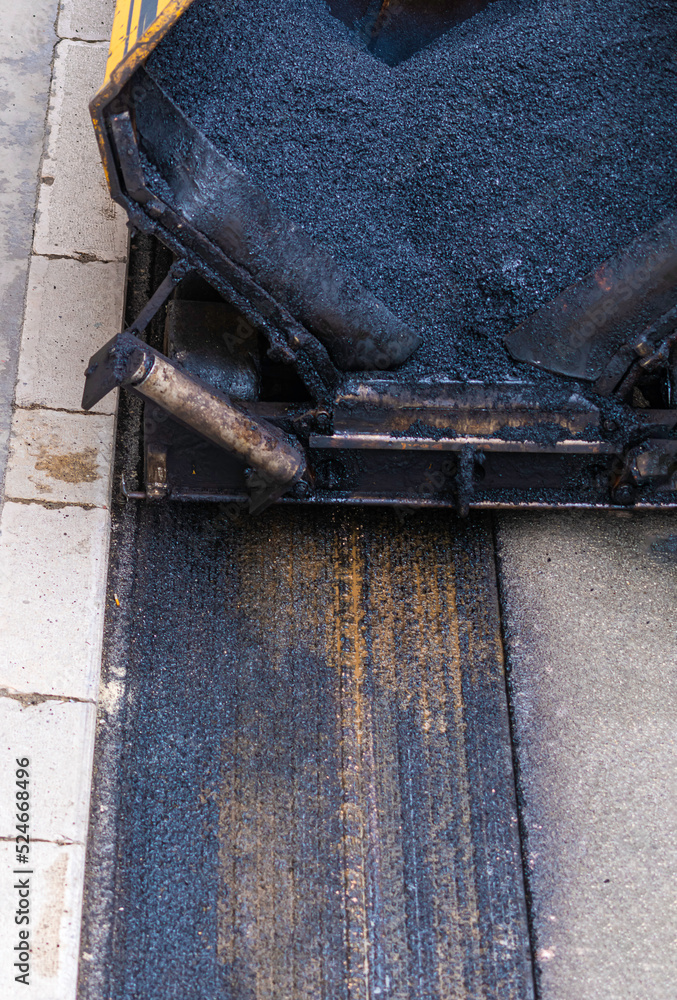 Tracked paver laying fresh asphalt pavement Stock Photo | Adobe Stock