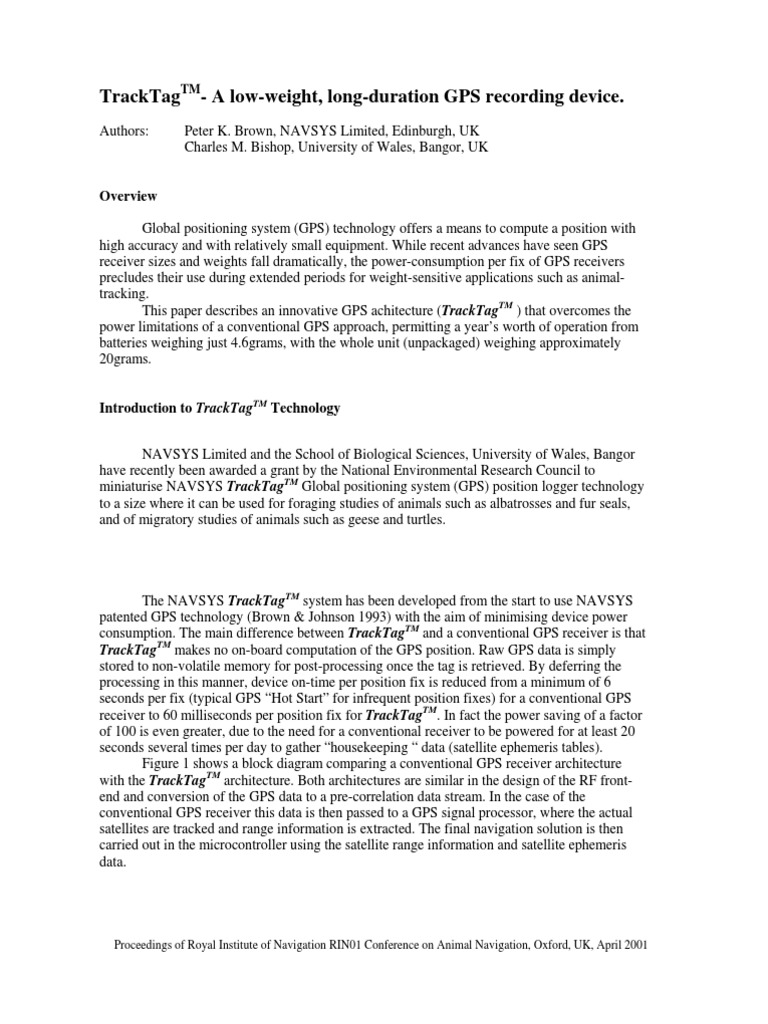 Tracktag - A Low-Weight, Long-Duration Gps Recording Device | PDF ...