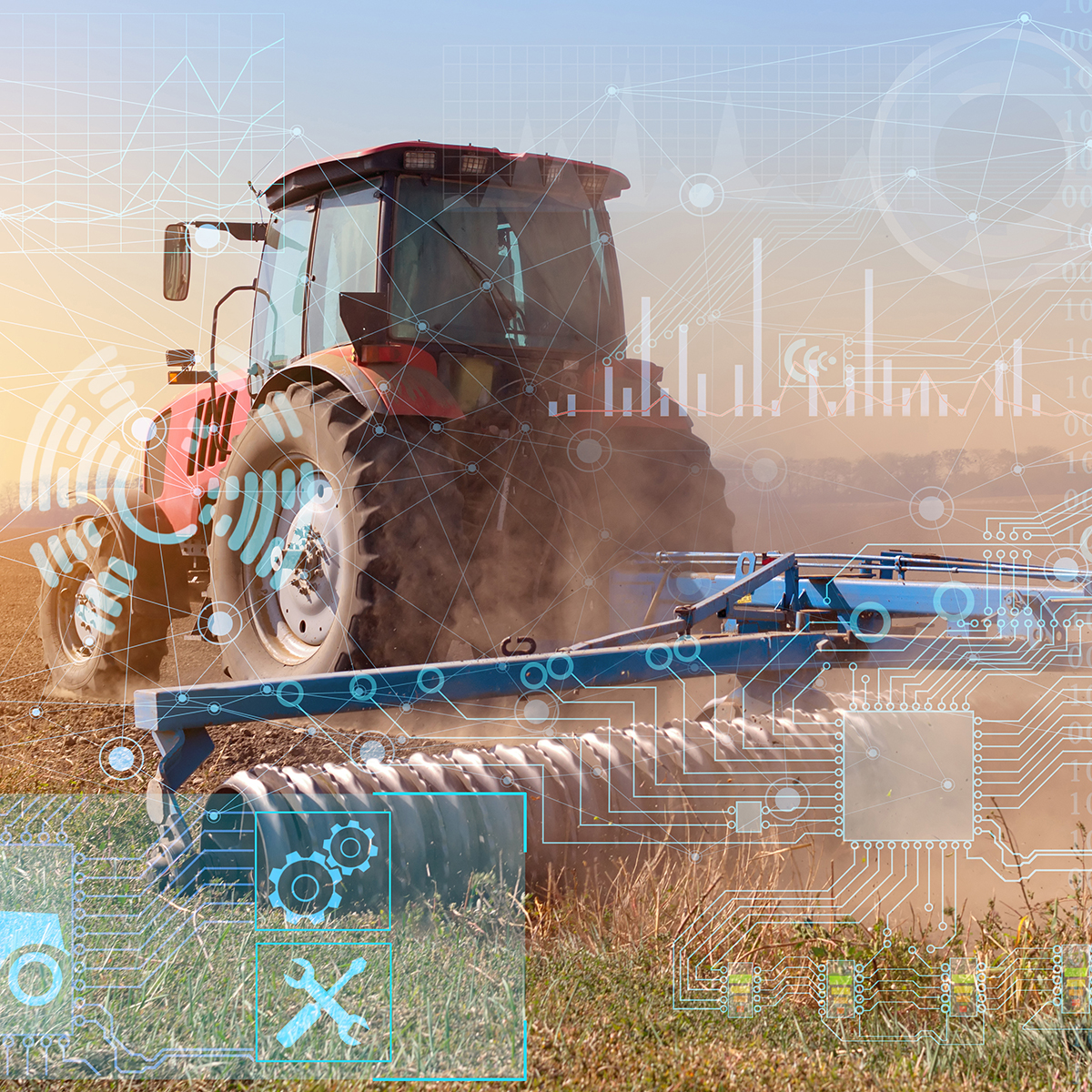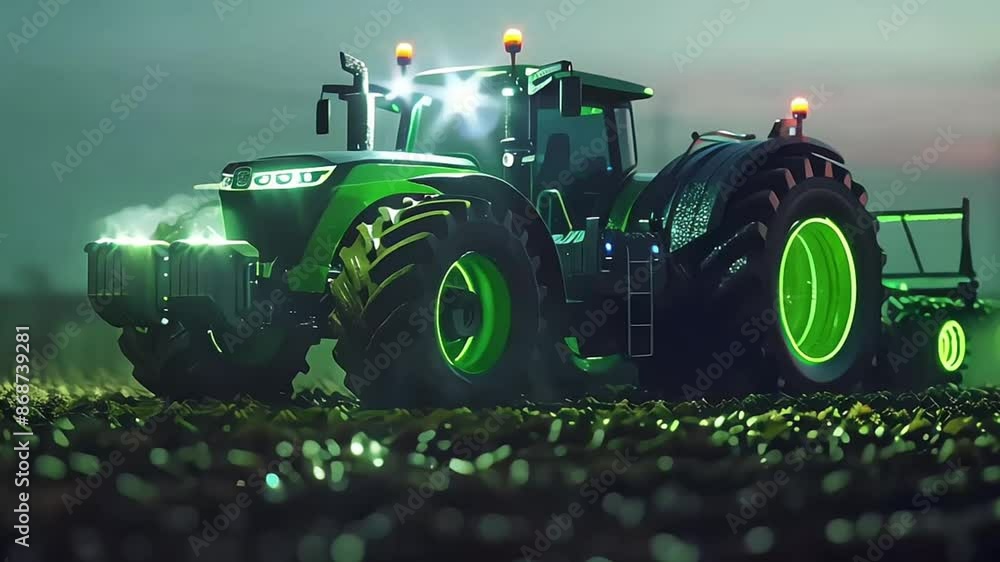 Smart Farming Automated Tractor in a Field with Digital Interface ...