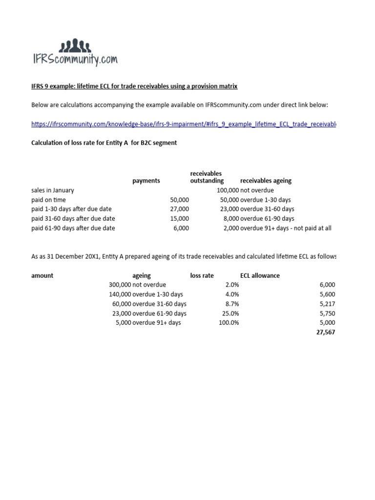 Ifrs 9 Example Lifetime ECL Trade Receivables Provision Matrix 01 | PDF ...
