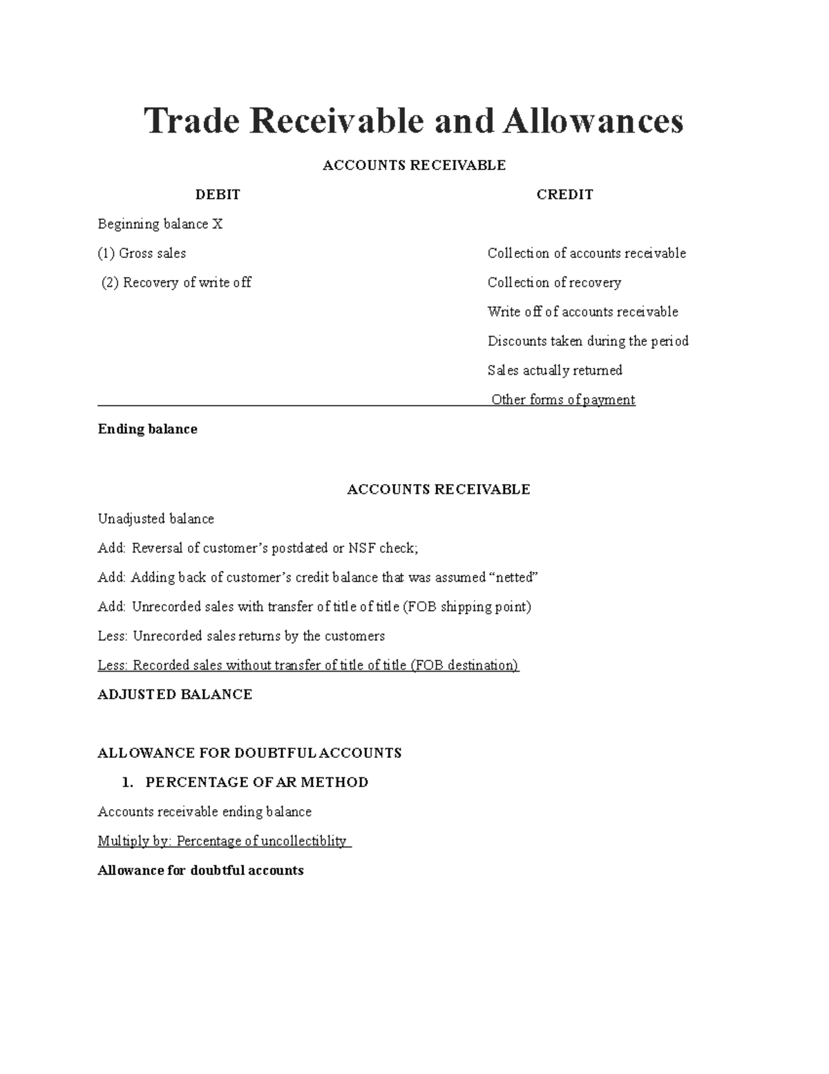 Trade Receivables & Allowance Methods: ACC 202 Study Notes - Studocu