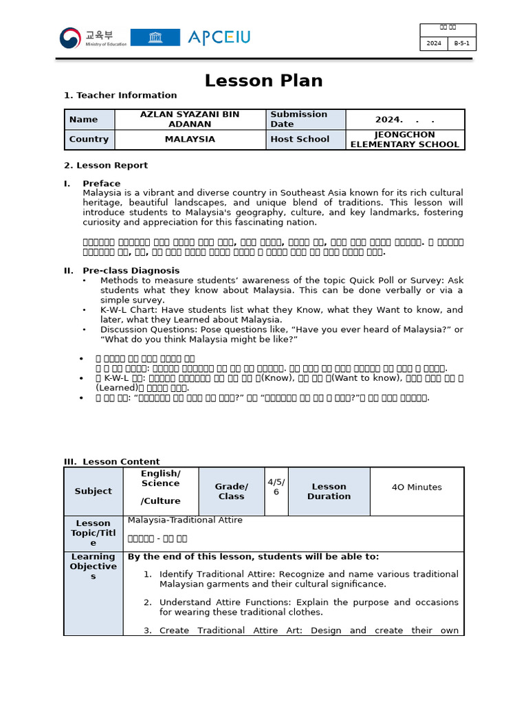 Lesson Plan-Malaysia-Traditional Attire | PDF
