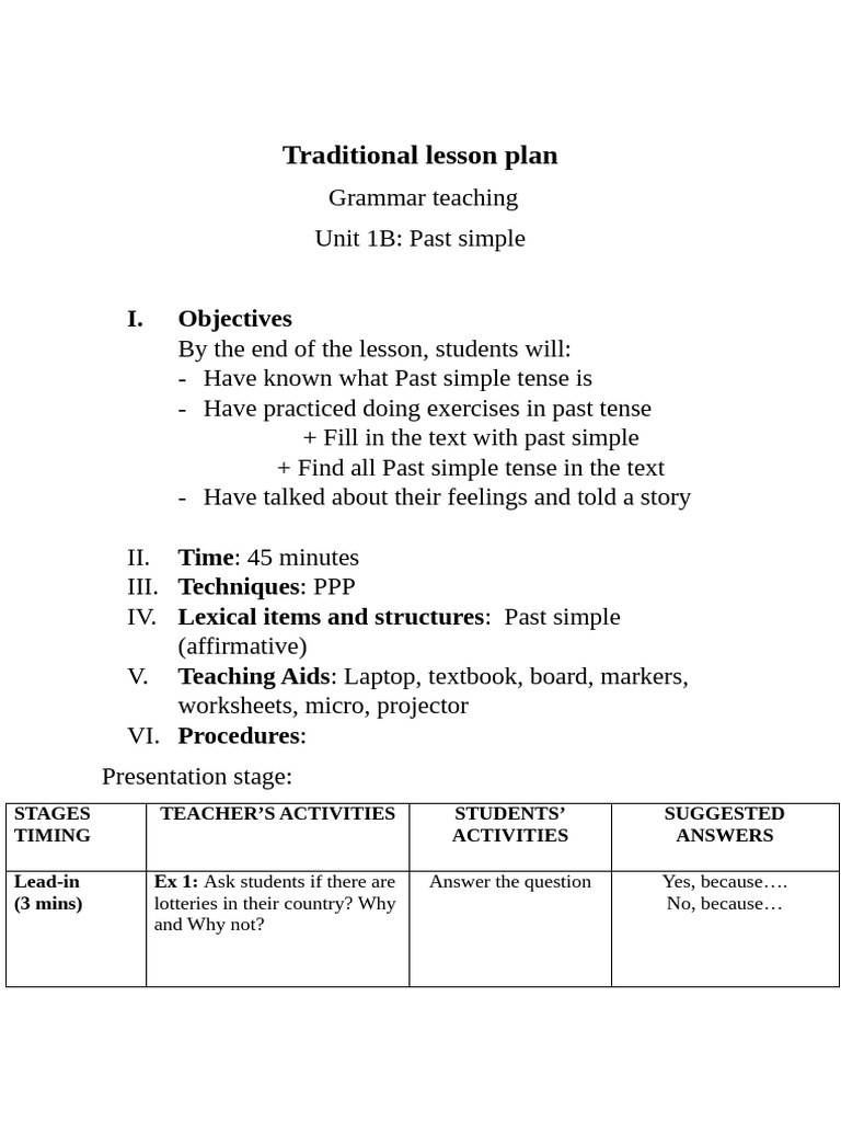 Traditional Lesson Plan | PDF