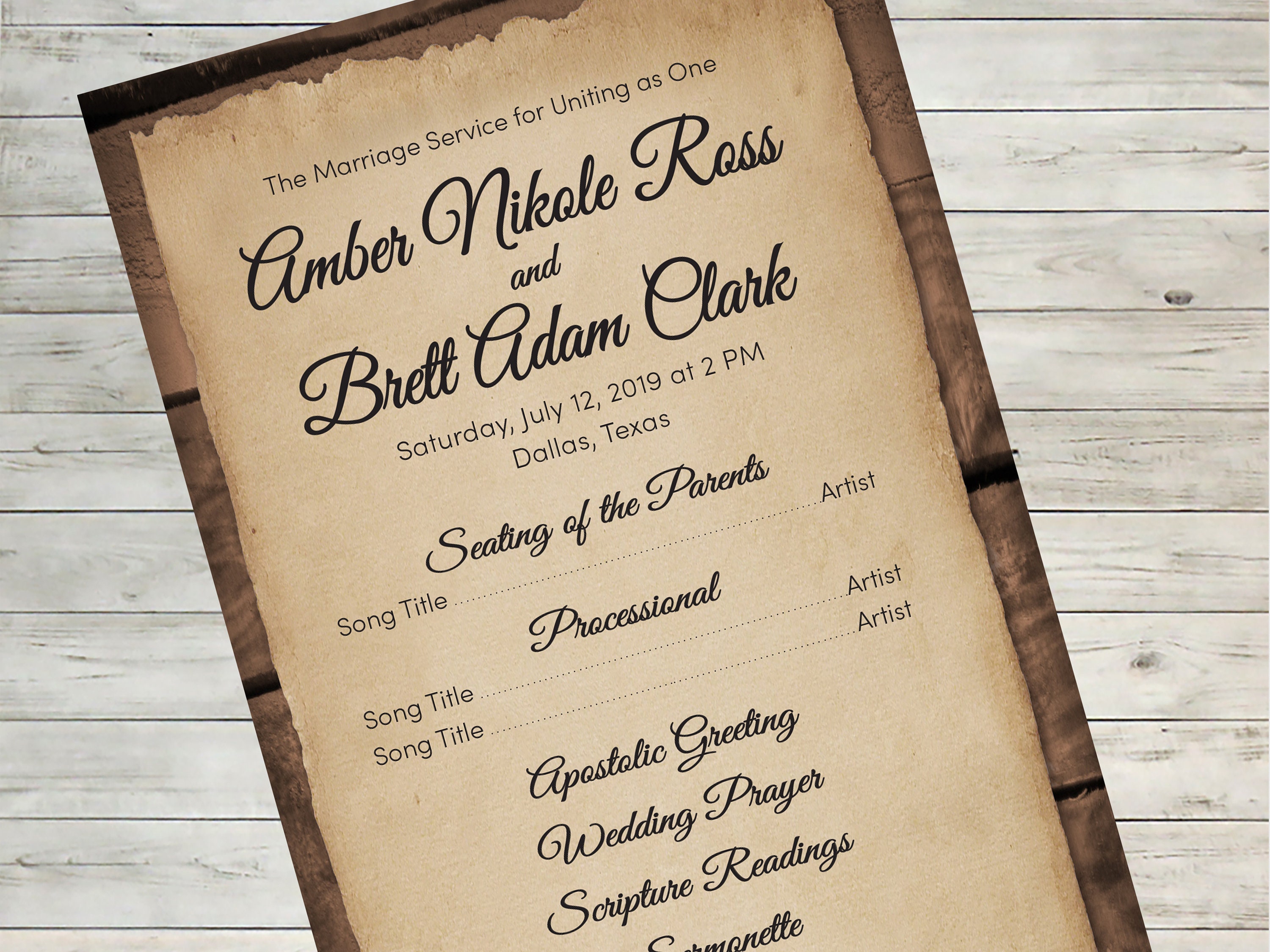 Custom Wedding Programs | Ceremony Outline