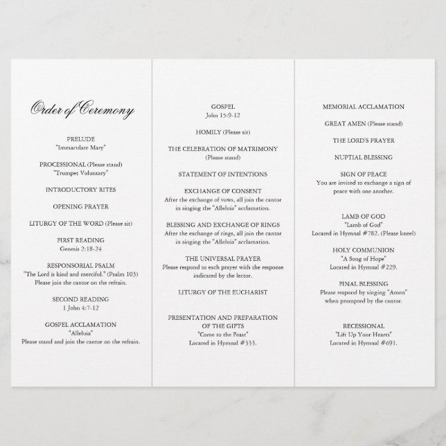 Traditional Wedding Ceremony Program | Elegant Catholic Wedding Program ...