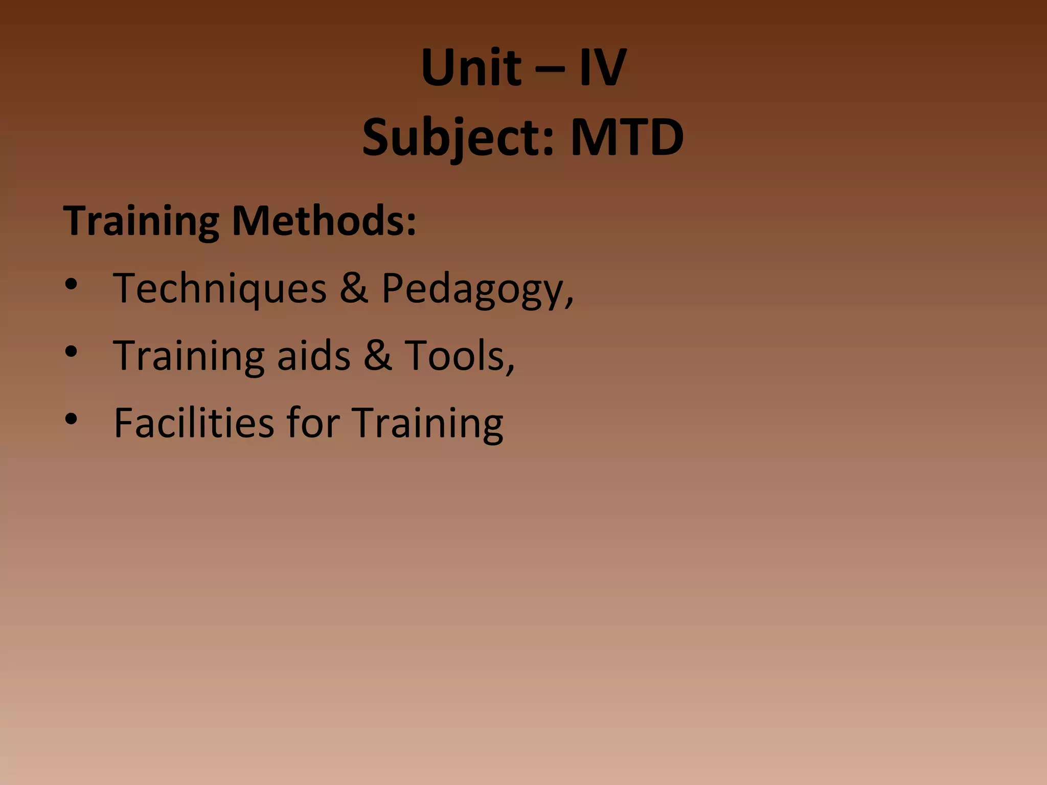 Training Methods, Techniques & Pedagogy, Training aids & Tools ...