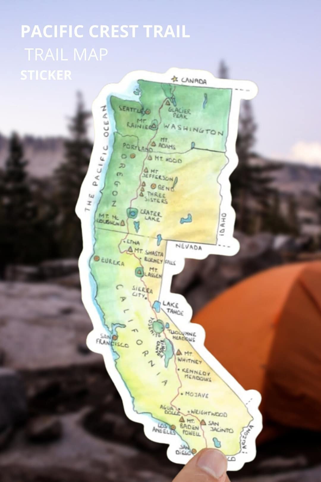 Pacific Crest Trail Map Sticker Watercolor Painting PCT Trail Map Vinyl ...