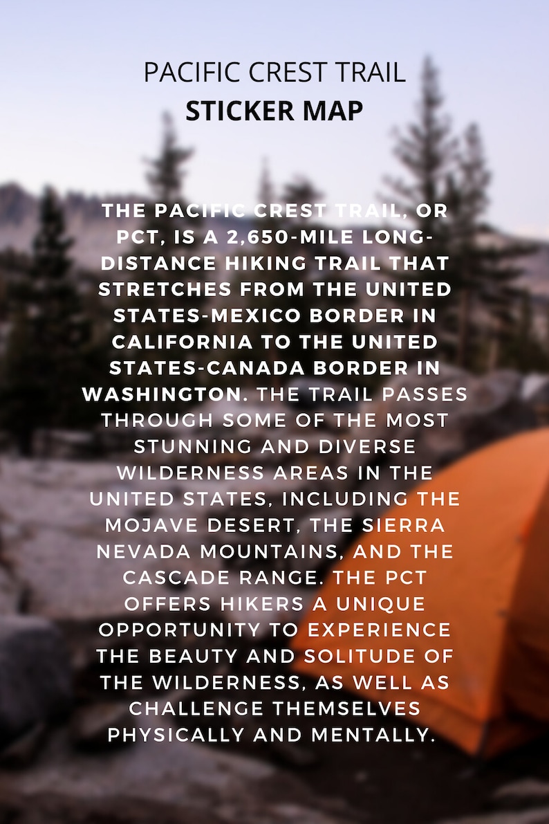 Pacific Crest Trail Map Sticker | Pct - Customized Decal Selection