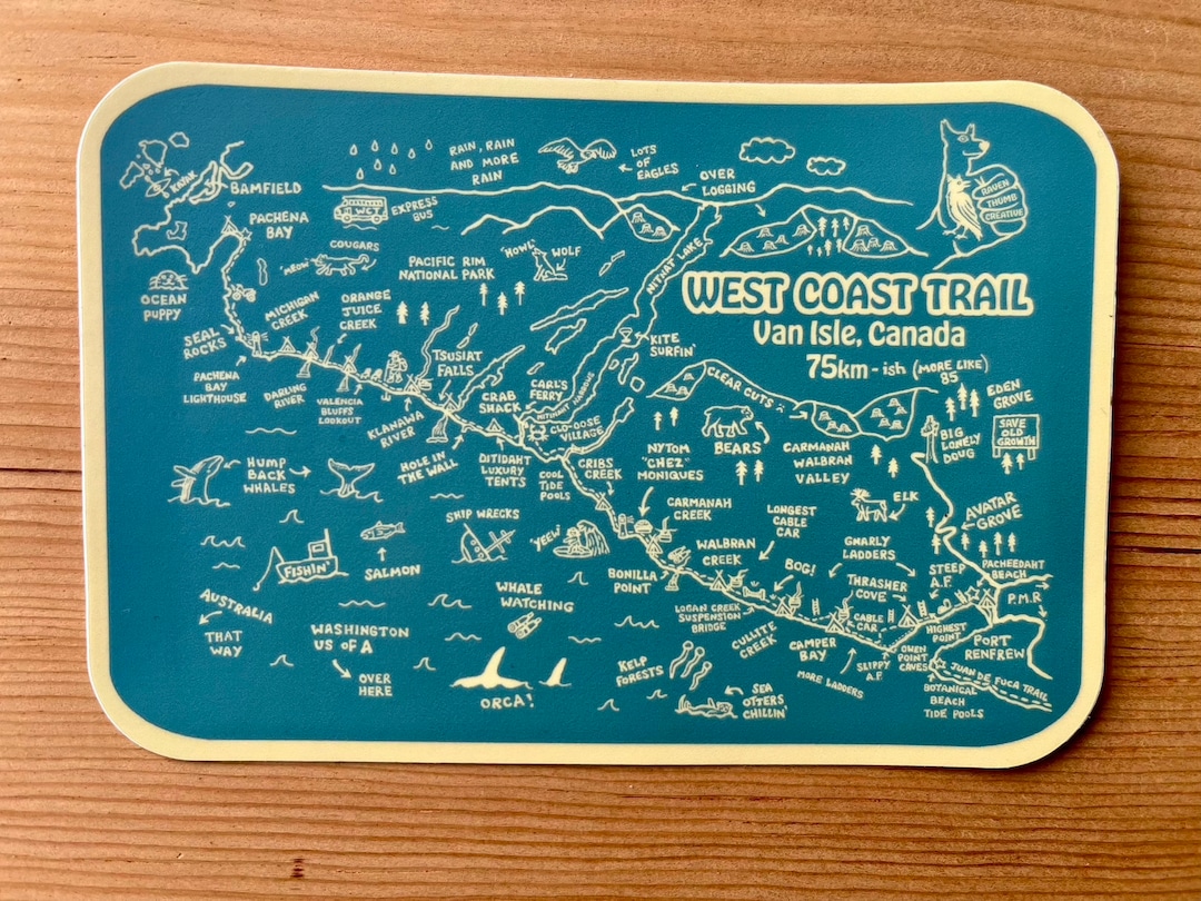 The West Coast Trail Map - Hiking Sticker - Pacific Northwest Keepsake ...
