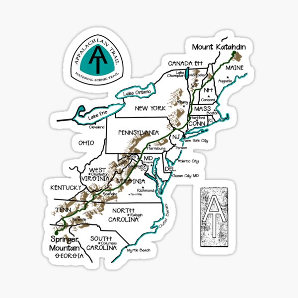 "Appalachian Trail Map" Sticker for Sale by ThreadsNouveau | Redbubble