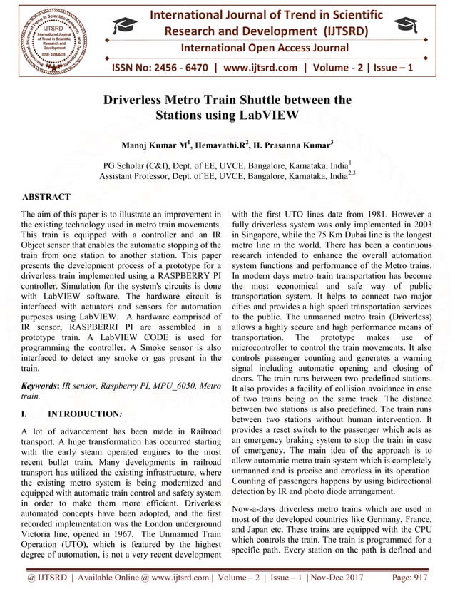 Driverless Metro Train Shuttle between the Stations using LabVIEW | PDF
