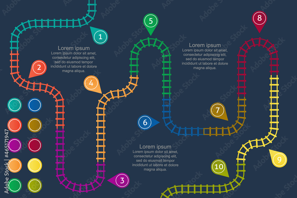 Railway track infographic template with 5 steps. Color gradi | Colourbox