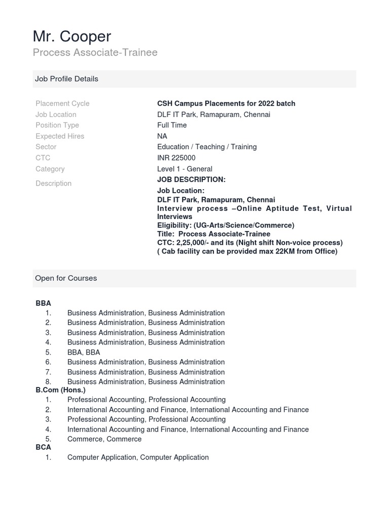 Congruent Solutions Virtual Drive | Trainee Process Associate | Chennai ...