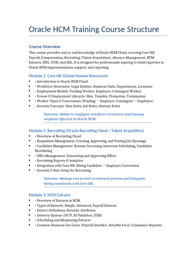 Oracle HCM Training Course Structure | PDF | Human Resource Management ...