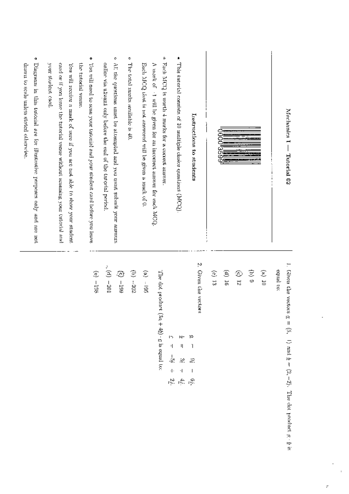 Mechanics I Tutorial 02: MCQ Instructions and Vector Problems - Studocu