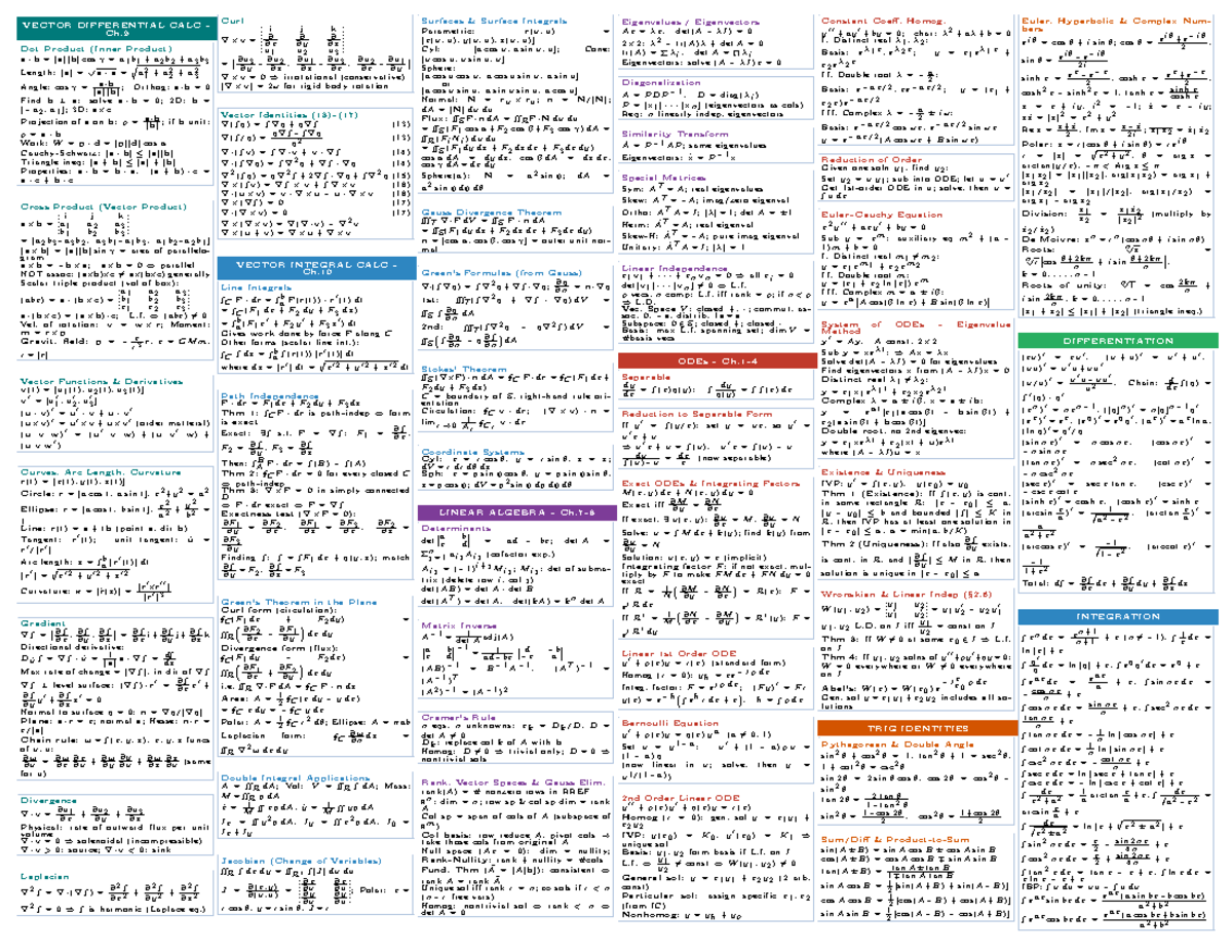VECTOR DIFFERENTIAL CALC Ch.9 & Ch.10 Formula Sheet - Studocu